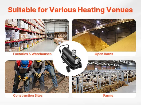 Desde almacenes y fábricas hasta granjas y áreas de construcción, este calentador de queroseno proporciona calor constante en grandes áreas, ideal para tareas diarias o estacionales.