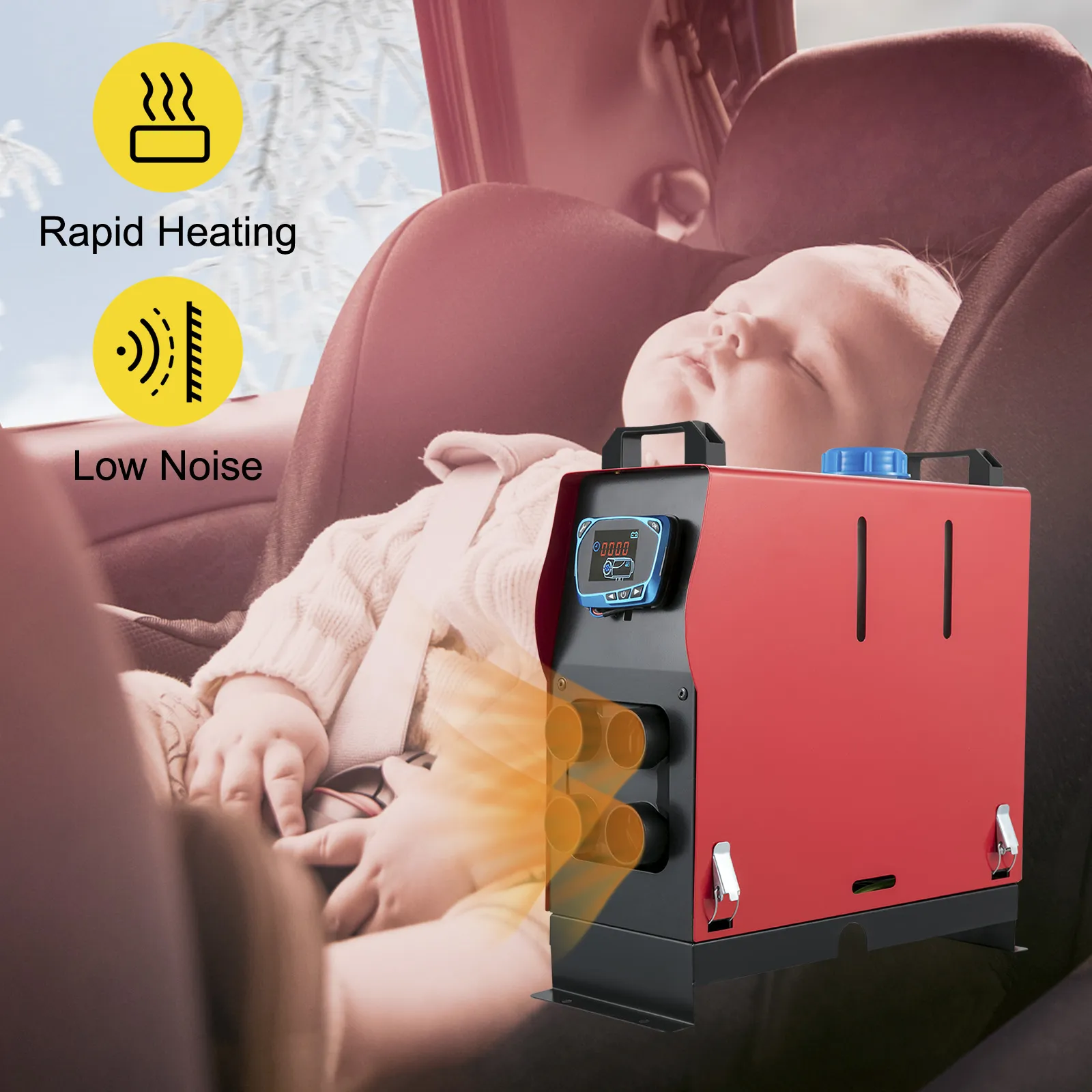 El calentador de aire diésel de 12V y 3KW consigue un calentamiento rápido incluso a -40℃, eliminando rápidamente la escarcha de las ventanas de su coche. El ruido también se reduce eficazmente mediante el control de la velocidad del soplador, el ventilador silencioso y la bomba de aceite.
