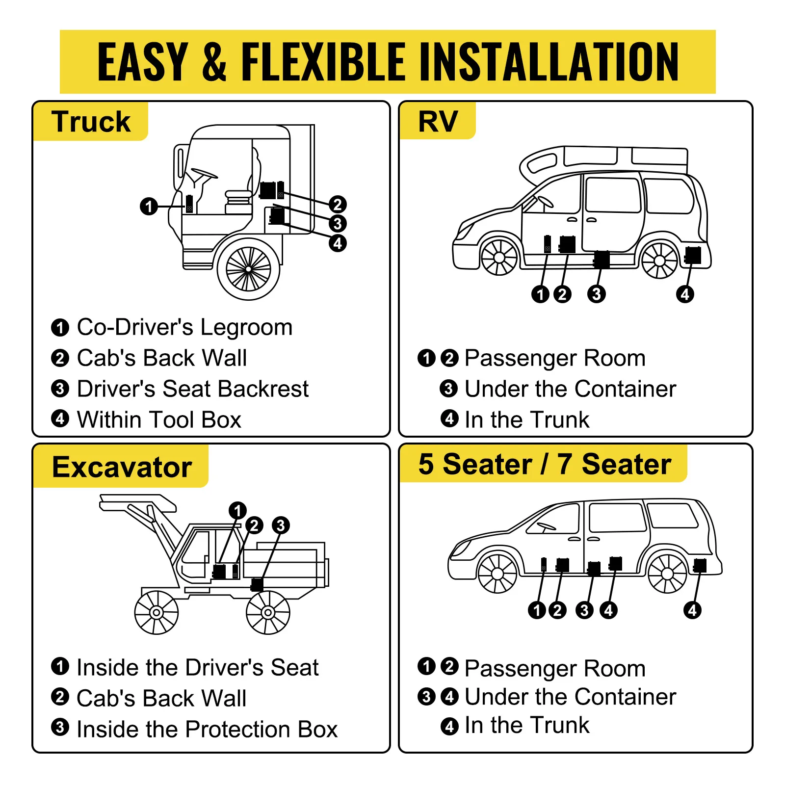 Nuestro calefactor de litera viene con un paquete de montaje completo, que incluye las piezas esenciales, los tubos y las herramientas. Es fácil de usar y se puede instalar de forma flexible en múltiples lugares de su vehículo.