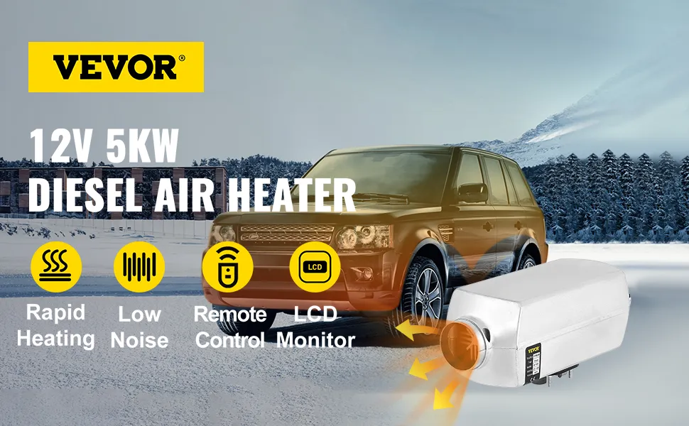 La carcasa de aleación de aluminio de este artículo es resistente a altas temperaturas y distorsiones, construida para durar. El calentador de aire puede producir calor rápidamente en cinco minutos con 5 kW. Puede proporcionar una conducción más segura de 12 V y una mejor visibilidad al eliminar la escarcha de la ventana. El diseño pequeño y compacto para una instalación fácil y que ahorra espacio dentro del interior o incluso debajo del piso y de bajo mantenimiento, fácil de usar.