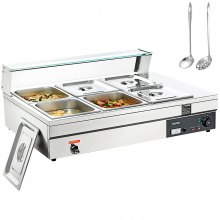 VEVOR Calentador de Bandeja de Patatas Fritas de Acero Inoxidable 20 L Lámpara de Calentador de Alimentos con Tira Comercial 750 W Estación Dispensadora de Luz de Calor Eléctrica 40-50 °C para Buffet