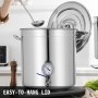 Le ofrecemos un juego de olla de caldo superior de 137.5qt/130L con tapa,termómetroygrifo.Cuando la tapa se combina con la olla de caldo, esta tapa es ideal para hervir lento o rápido. Esta tapa de calidad comercial es versátil y fácil de limpiar, cuando se combina con la olla, es un elemento esencial para cualquier cocina. Además, la tapa se puede colgar en el lado de lamanija.