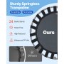 Fun Patterns: The upgraded jumping mat features digital printing technology with fun patterns that will delight children. The PP mat is wear-resistant, durable, waterproof, and easy to clean. With 24 elastic bands supporting a maximum weight of 100 kg (220 lbs), the thick safety padding prevents feet from getting trapped, ensuring safety with every jump.