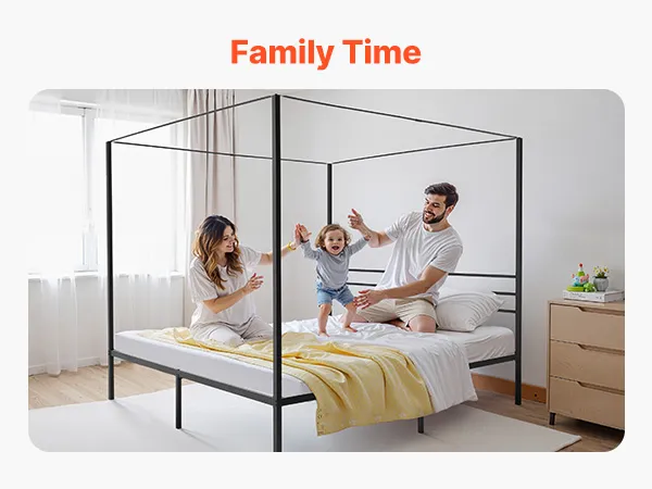Construcción metálica robusta: Nuestra cama con dosel cuenta con una estructura metálica reforzada con un diseño de dosel de cuatro postes y láminas reforzadas para evitar que el colchón se hunda. Soporta hasta 363 kg para una estabilidad fiable