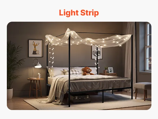 Personalización de bricolaje: Los rieles y postes del dosel le permiten colgar fácilmente luces de cadena, decoraciones y cortinas para crear un espacio de dormitorio personalizado
