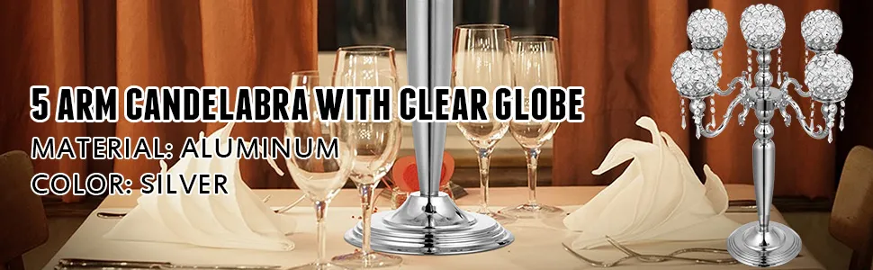 Este centro de mesa candelabro plateado para mesa presenta globos hechos a mano, gotas de cristal y ramas curvas. Un diseño clásico crea perfectamente una mesa elegante. Deje que estos hermosos candelabros de 5 brazos hagan que sus fiestas y cenas formales sean impresionantes y memorables.