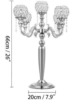 Altura: 26 pulgadas / 66 cm; Diámetro base: 7.9 pulgadas / 20 cm . El área de base adecuada y 5 platos de velas a diferentes alturas aseguran que sea lo suficientemente compacto y no interfiera con la conversación de la mesa, adecuado para la decoración de la mesa.