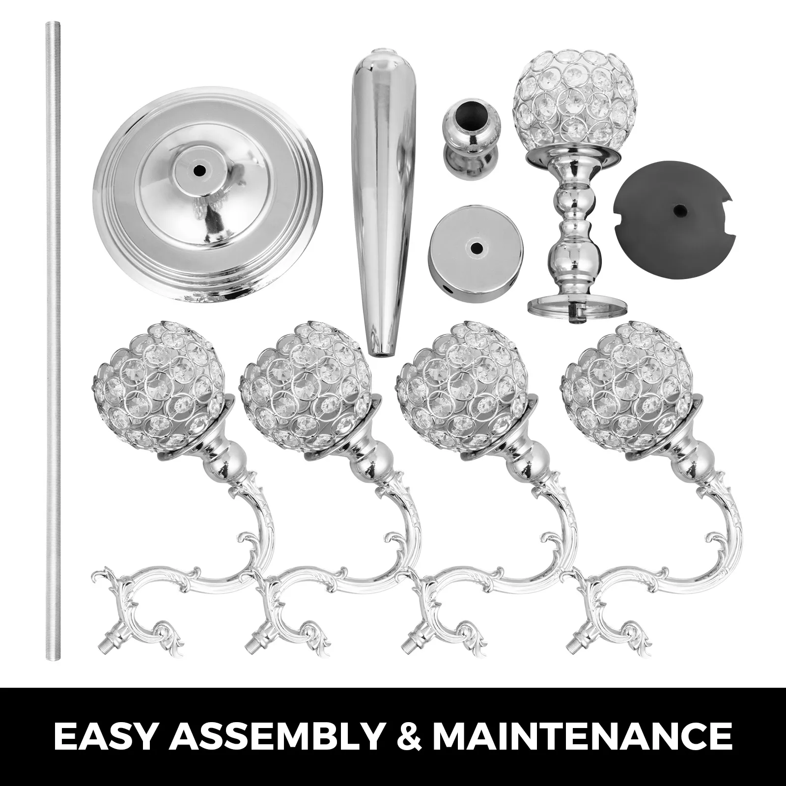 Este centro de mesa con candelabros plateados se entrega en piezas, por lo que se requiere ensamblaje. Le lleva menos tiempo instalarlo y atornillarlo. Se puede limpiarlo y convenientemente y rápidamente con un trapo.