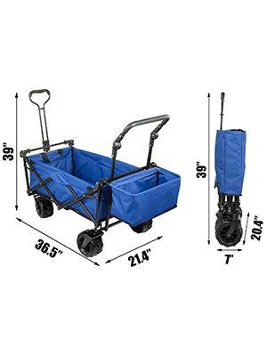 El vagón plegable está plegado en un tamaño portátil de 39 " x 20,4" x 7 ". Se establece en segundos, no se requiere ensamblaje. Plegable en la bolsa de transporte de tamaño pequeño para un almacenamiento conveniente.