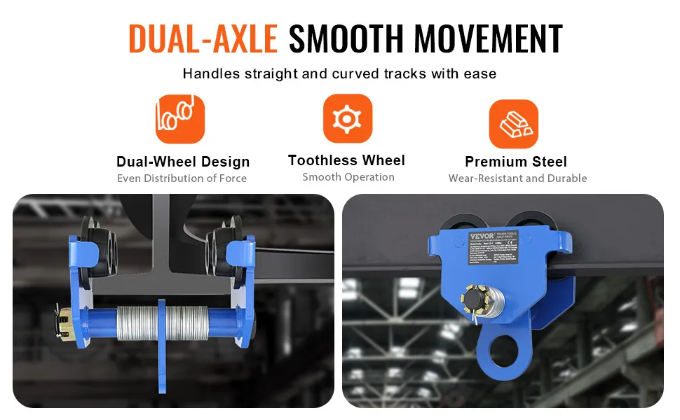 Es muy sencillo instalar el polipasto de acero de aleación de alta resistencia VEVOR. Mida el tamaño de la viga y coloque las arandelas. Fíjelo en su lugar con la tuerca y el pasador de alambre. Está listo para usar en minutos. La instalación es sencilla en varias vigas de acero, lo que ahorra tiempo y esfuerzo. Este carro está diseñado para una instalación rápida y un uso inmediato. No se requieren herramientas ni instrucciones complicadas. Concéntrese en su trabajo, no en la instalación. Este carro agiliza sus operaciones desde el principio.