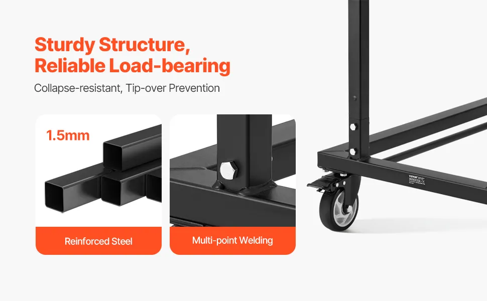 Resistente y duradero: Fabricado con acero reforzado y tecnología de soldadura multipunto, este carrito para sillas es resistente y estable, lo que garantiza la seguridad y la confiabilidad incluso cuando está completamente cargado. No se derrumbará ni se volcará inesperadamente