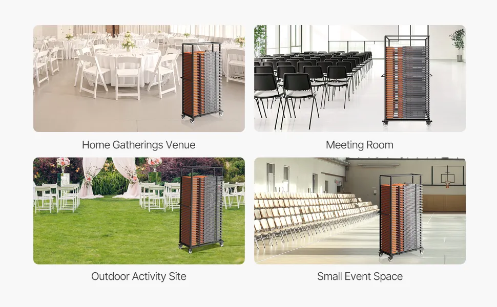 Este carrito para sillas de comedor combina a la perfección un transporte cómodo con un diseño que ahorra espacio, lo que lo hace perfecto para una variedad de entornos, como eventos, conferencias y más.