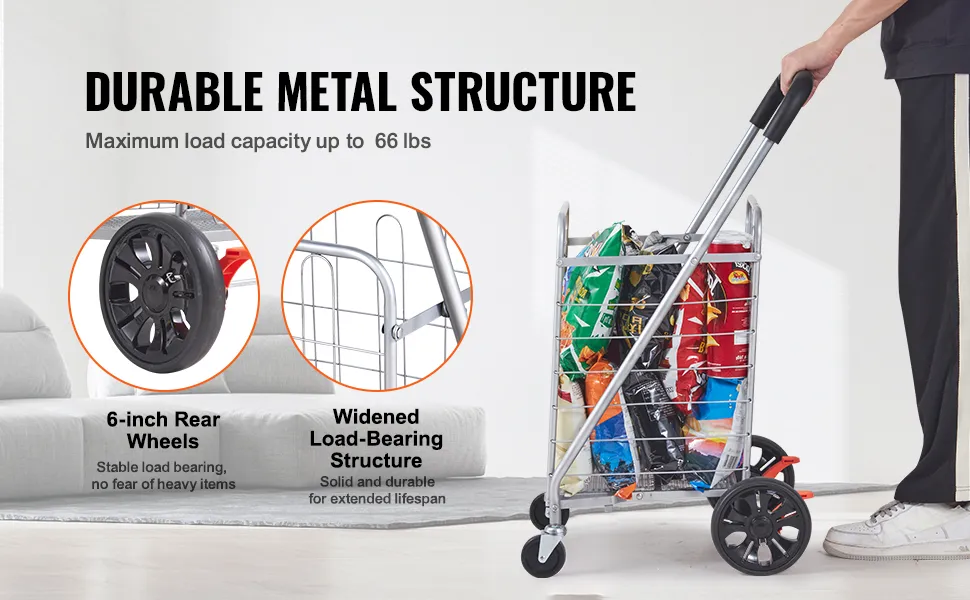 Este carrito es resistente a pesar de su apariencia liviana. Puede soportar hasta 66 libras cuando está parado. Esto hace que este carrito de compras sea ideal para transportar artículos pesados. La construcción robusta del carrito garantiza que pueda soportar la carga. No tiene que preocuparse de que se doble o se rompa. La base de red densa y los postes resistentes mantienen las cosas seguras. Esto es especialmente útil cuando se transportan artículos frágiles o pesados. Sin embargo, la resistencia del carrito no lo hace voluminoso; aún se puede plegar para un fácil almacenamiento. Una de las características más importantes que muchos usuarios notan es la capacidad de soportar cargas pesadas.