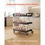 VEVOR Multi-Purpose Trolley, 226 kg Load Capacity, 3-Tier Universal Trolley Made of Plastic with 360° Swivel Wheels (2 with Brakes), 106x49x98 cm Serving Trolley for Warehouse, Office, Home, Restaurant, Kitchen