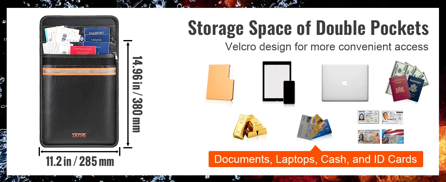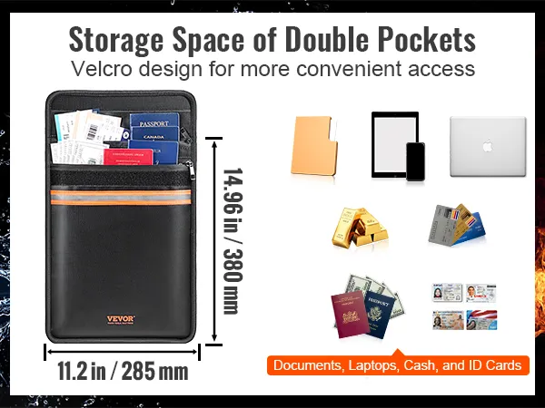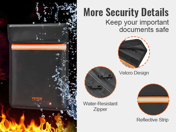 • Doble bolsillo mejorado: Con su diseño de doble bolsillo, esta bolsa para documentos ignífuga le brinda más compartimentos independientes para organizar sus documentos y facilitar el acceso a sus artículos. La cremallera y el cierre de velcro aseguran que todos sus artículos permanezcan seguros en la bolsa.