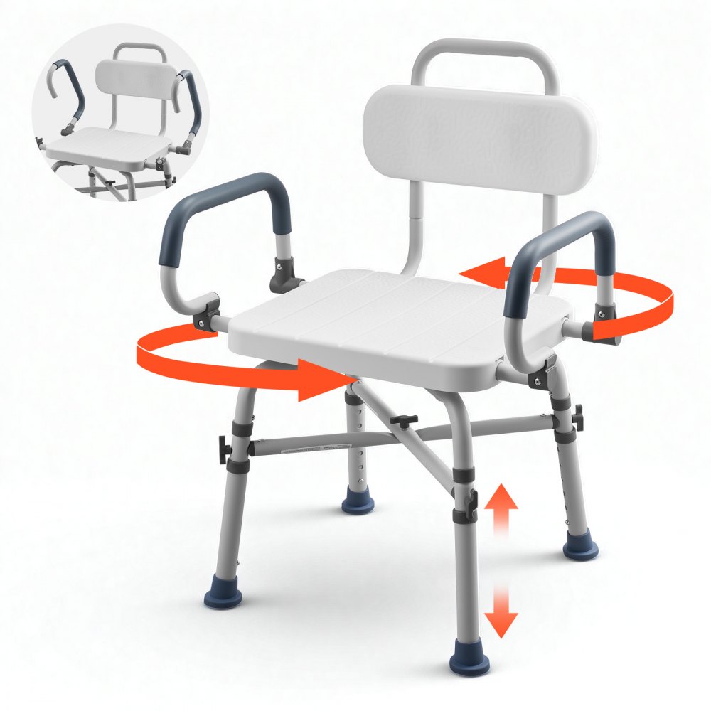 VEVOR Silla de Bañera con Asiento Giratorio, Brazos y Respaldo, Carga de 226 kg, Altura Ajustable de 415 a 540 mm, Asiento de Bañera para Adultos, Personas Mayores, Personas con Discapacidad