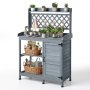 Mesa de banco para macetas con estantes y gabinete de 4 niveles
