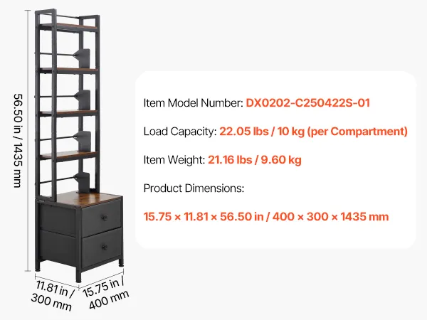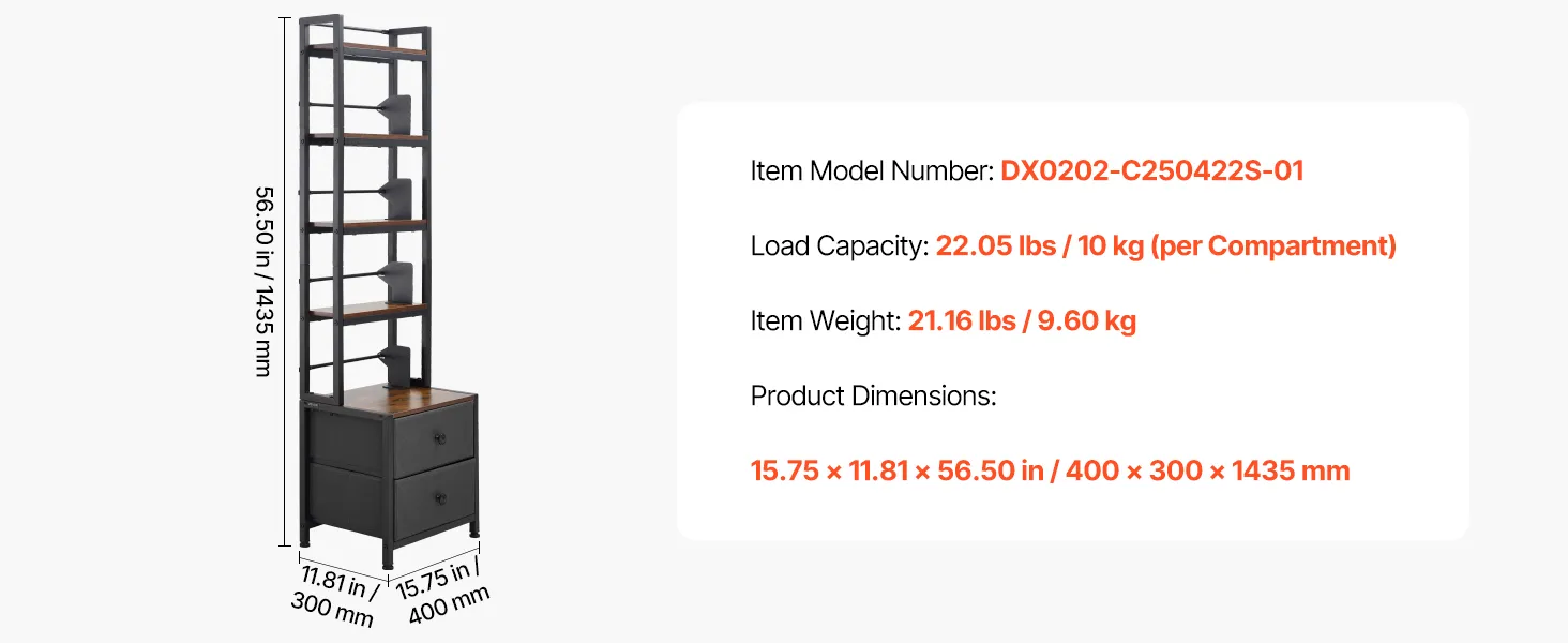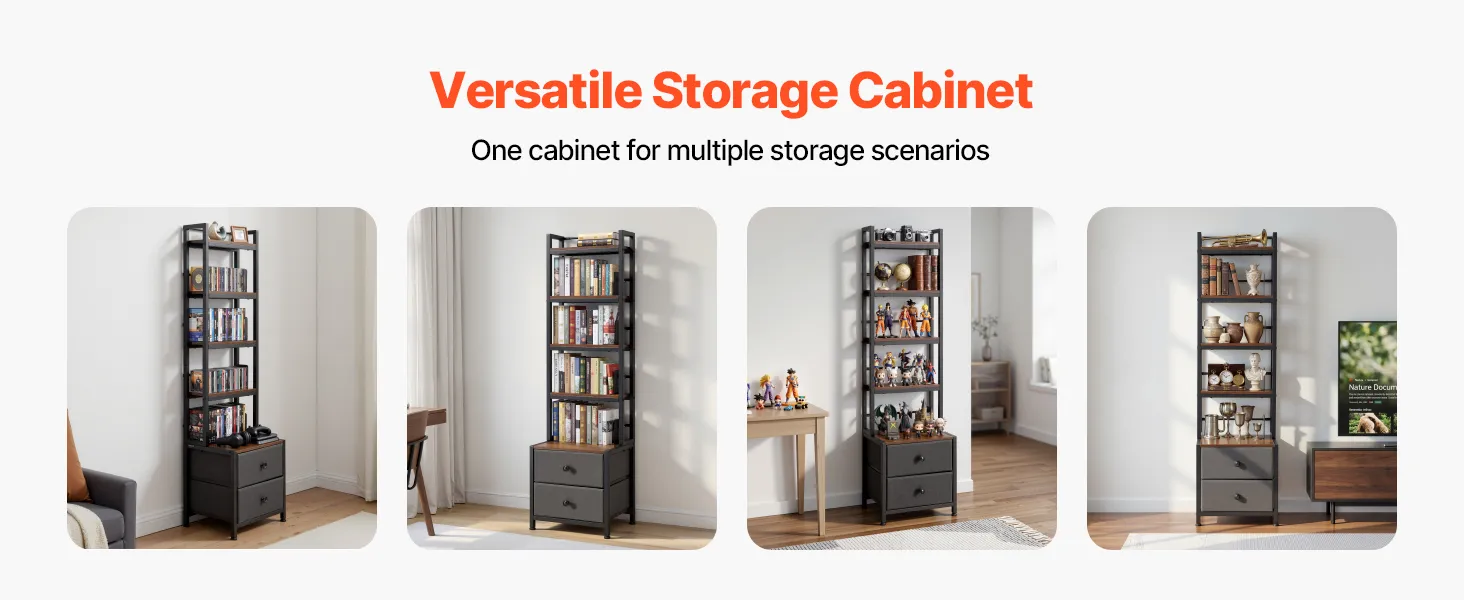 VEVOR Mueble de Almacenamiento Multimedia con 4 Estantes y 2 Cajones, para CD, DVD, Libros y Discos de Juegos, Ideal para Sala de Estar, Oficina en Casa, Sala de Grabación, 40 x 30 x 143,5 cm
