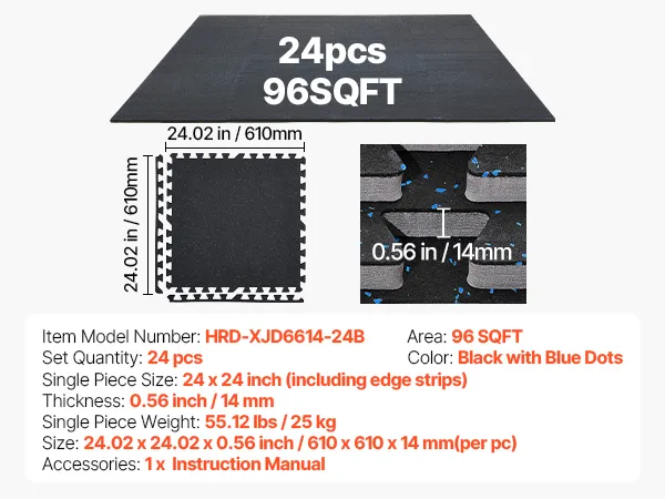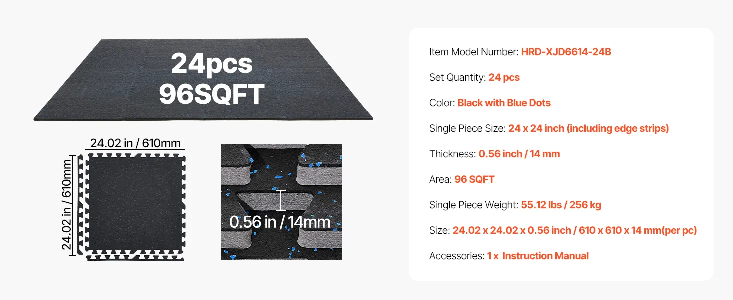 VEVOR Esterilla Puzzle 24 Piezas de 610 x 610 x 14 mm, Suelo Gimnasio de Goma EVA Alta Densidad, Colchoneta de Ejercicios con Puntos Azules Antideslizante Antigolpe Antiruido para Equipo Pesado, Casa