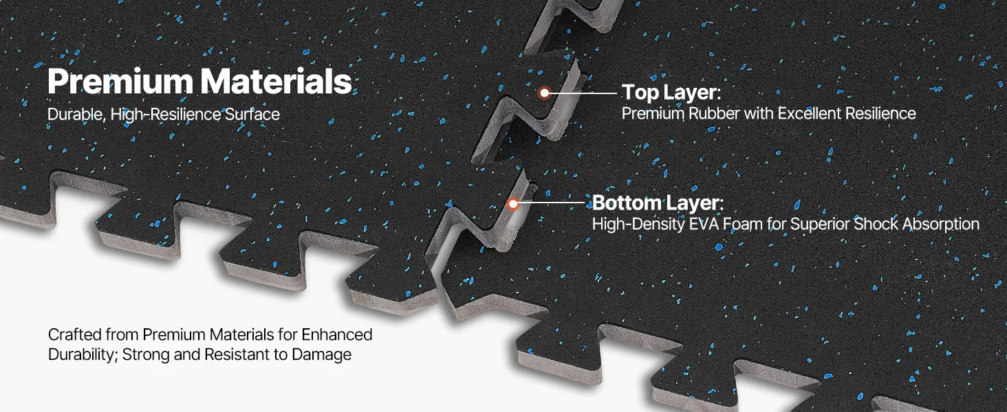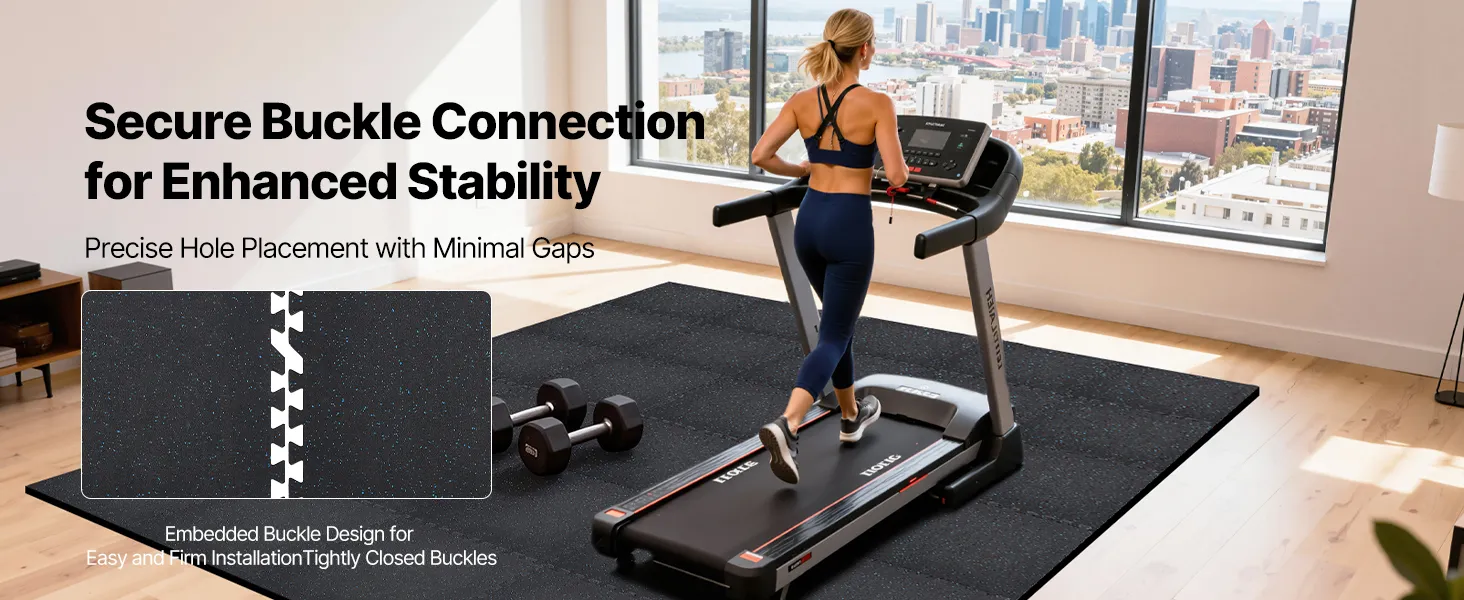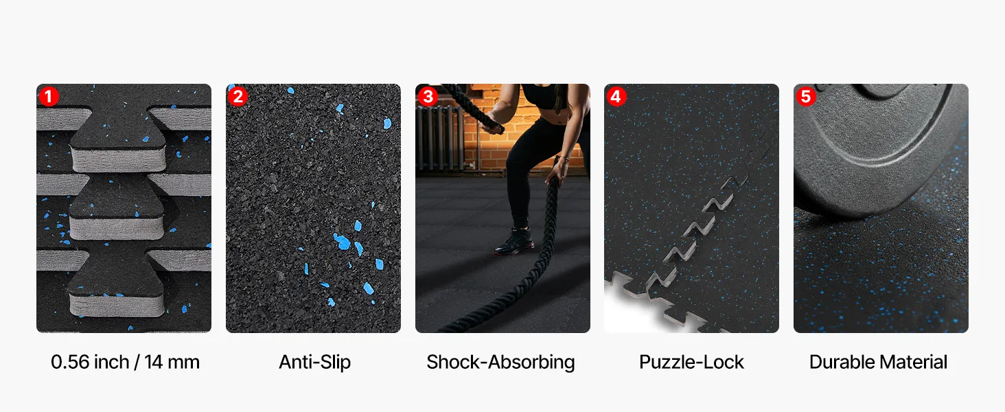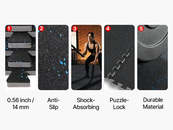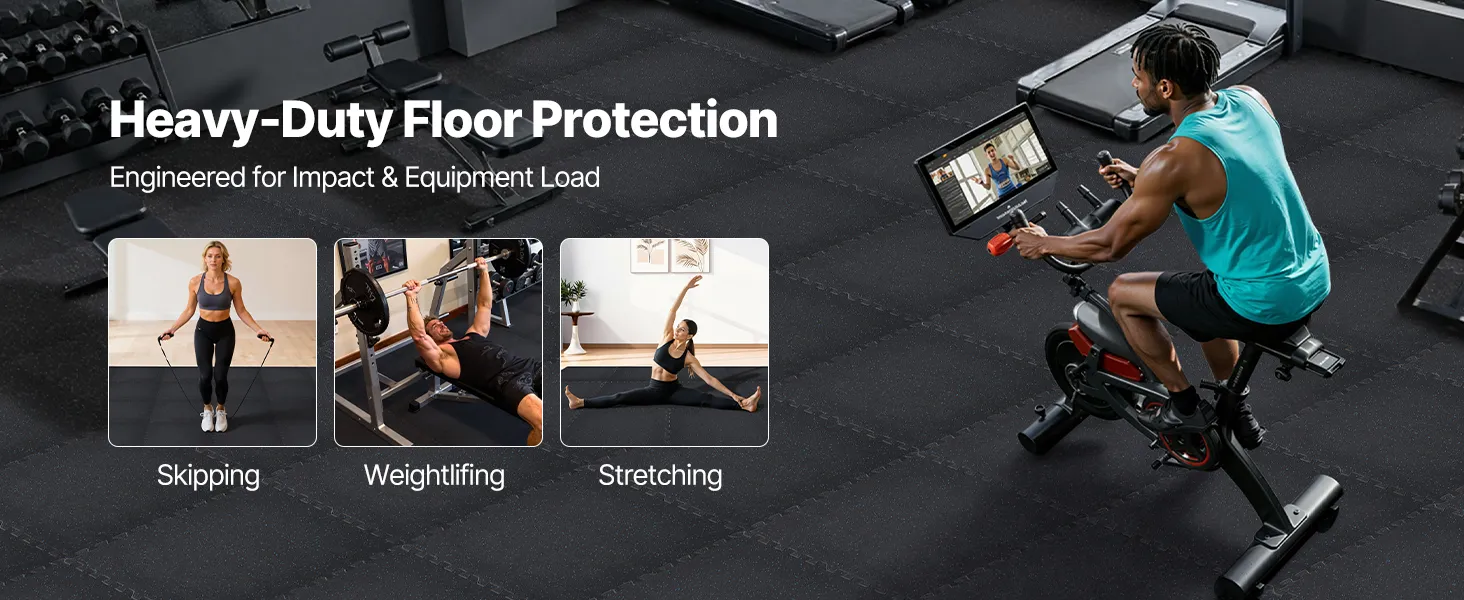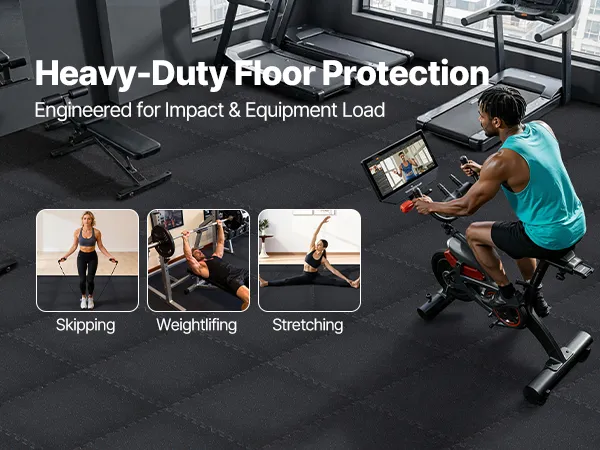 Reducción eficaz de ruido y golpes: La goma gruesa de la alfombrilla para equipos de fitness reduce la vibración y el ruido del equipo, ideal para apartamentos y gimnasios en garajes