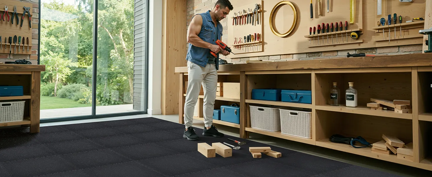 Protección profesional para pisos: Esta esterilla puzzle de alta densidad absorbe el impacto, evita abolladuras y protege los pisos de equipos pesados sin deformarse