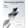 Facilita el flujo de viruta: Estas brocas anulares cuentan con un diseño de corte anular que corta solo donde es necesario, mientras que las ranuras de viruta ampliadas ayudan a reducir la acumulación de viruta durante la perforación. La geometría plana y puntiaguda de la hoja facilita una entrada de corte constante