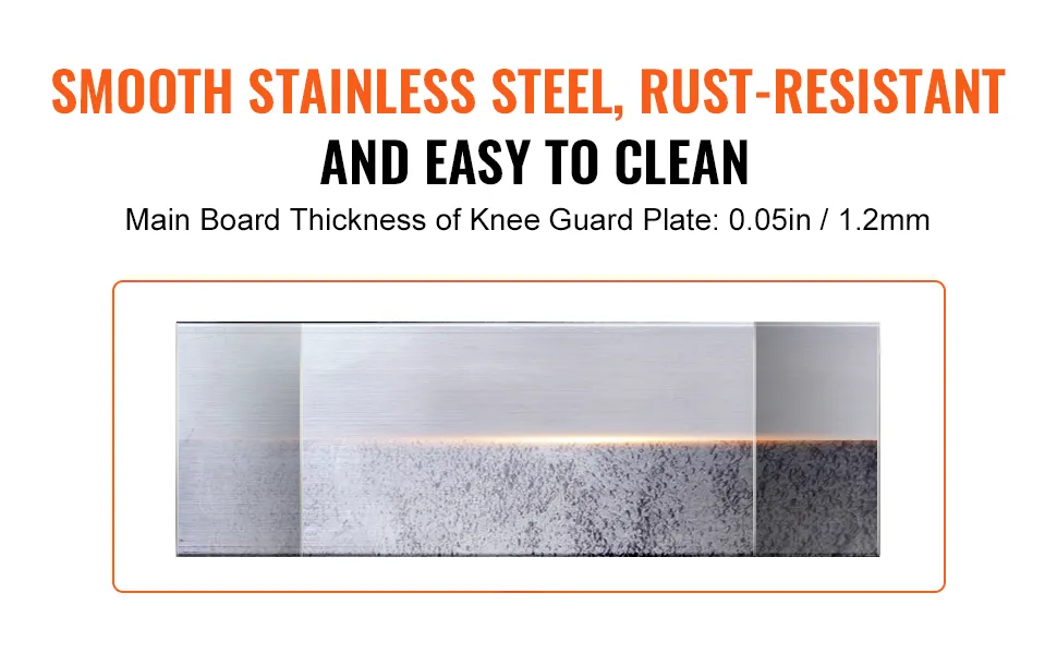 El material resiste rayones, abrasión, óxido y corrosión. La construcción de acero inoxidable garantiza una vida útil prolongada. Esta tabla de acero inoxidable para rodillas puede soportar un uso intensivo y condiciones adversas. Su construcción duradera garantiza confiabilidad y tranquilidad. Esta construcción sólida significa que no necesitará reemplazarlas con frecuencia. Invierta en estas tablas duraderas para un uso a largo plazo.