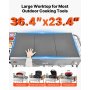 Encimera extragrande: Con una superficie de 925 x 595 mm, el carro de barbacoa de superficie plana admite hornos de pizza, parrillas de superficie plana, unidades de sobremesa y cocinas portátiles. Su diseño ensanchado crea espacio adicional para preparar y emplatar cómodamente, facilitando una rutina de cocina al aire libre más fluida