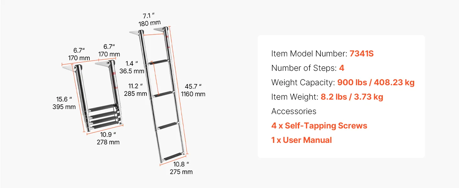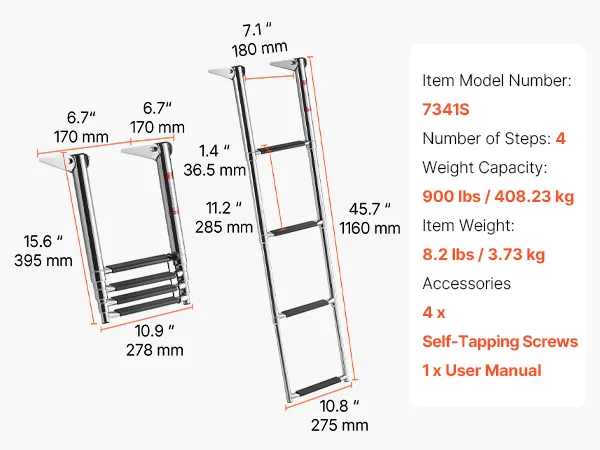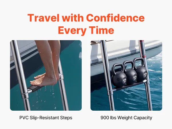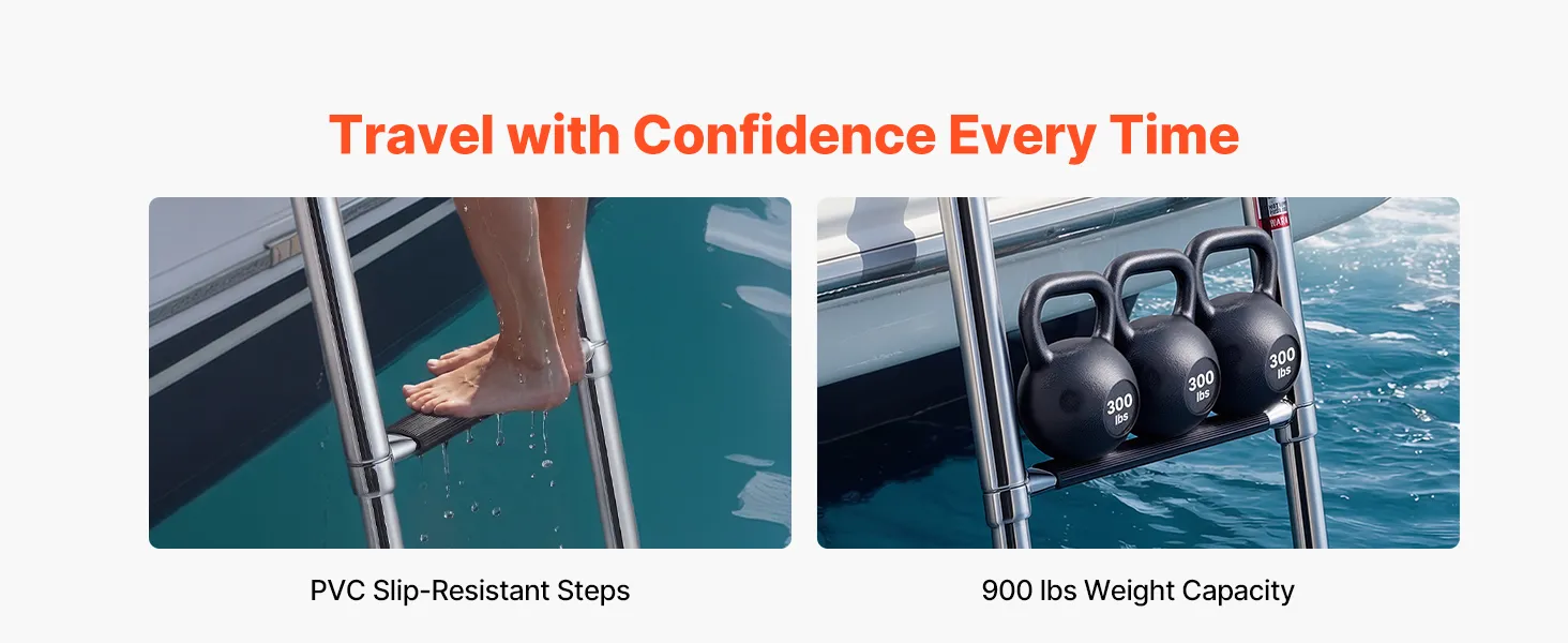 Fabricada con peldaños antideslizantes de PVC y con una capacidad de carga de 408 kg (900 libras), esta escalera plegable para barcos proporciona una estabilidad fiable y tranquilidad para usted y su familia en cada viaje.