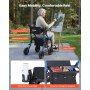Plegado rápido: La silla de transporte integrada se pliega rápidamente en segundos. Su tamaño compacto una vez plegada permite pasar fácilmente por espacios estrechos y caber en la mayoría de los maleteros, facilitando el transporte y el almacenamiento
