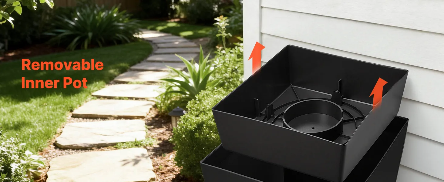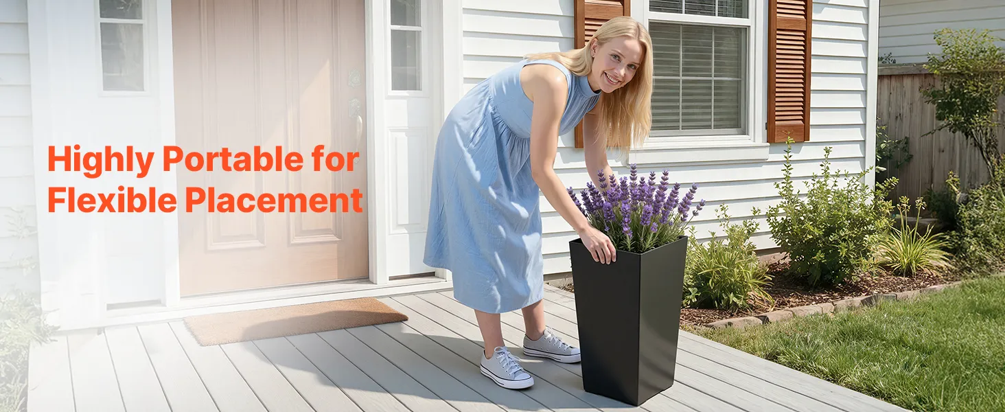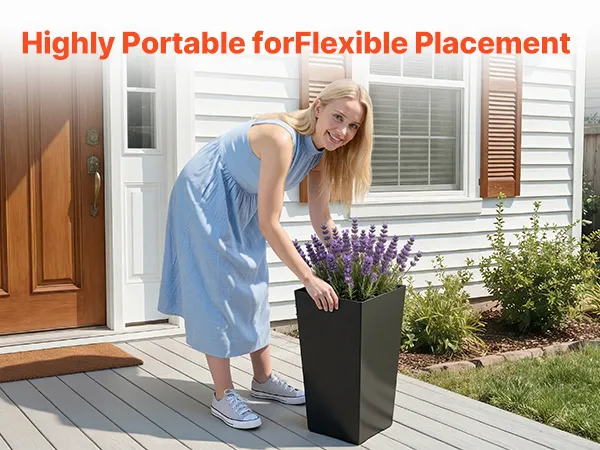 Fácil de mover: Diseñadas para garantizar la estabilidad, nuestras jardineras altas para porches se mantienen firmes incluso en condiciones climáticas adversas. Esto te permite cambiarlas de sitio fácilmente, lo que facilita su colocación incluso en espacios reducidos