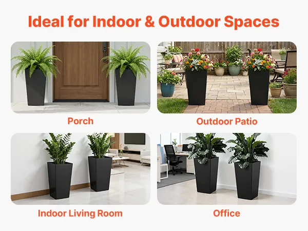 Estilo limpio y moderno: Con diseño elegante y atemporal, estos maceteros altos para plantas se integran de manera fácil con cualquier decoración, desde la moderna hasta la tradicional. Ya sea para espacios interiores o exteriores, realza el estilo de tu hogar