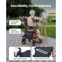VEVOR Andador para Ancianos con Asiento Soporta 136 kg, Ruedas de PU, Silla de Transporte Plegable, Reposabrazos Ajustable, Rollator Aleación de Aluminio para Personas Mayores Exterior Paseos Compras