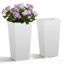 VEVOR Macetas Altas para Plantas 550 mm, Paquete de 2 Piezas, Maceteros Grandes para Interior y Exterior, Cónico Cuadrado, con Depósito, Diseño Moderno, Plástico, Decoración para Jardín Hogar, Blanco
