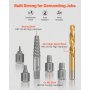 Juego de extractores de tornillos y brocas: Este juego incluye 8 extractores en espiral, 13 extractores multiestriados y 18 brocas, además de 2 adaptadores. Compatible con tornillos de tamaños comunes para una extracción eficiente de tornillos dañados o atascados
