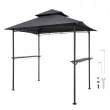 VEVOR Grill Gazebo, 2.43 x 1.5 m Outdoor BBQ Gazebo with Double-Tiered Roof, Powder-Coated Steel Patio Grill Shelter with 2 Side Shelves & 8 Hooks, Grilling Canopy for Patio Backyard Garden Picnic