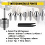 • 【7 PUNTOS INTERCAMBIABLES】- 7 puntos intercambiables están diseñados para adaptarse a diferentes requisitos de trabajo. Un conjunto de puntos intercambiables se puede utilizar de forma flexible y práctica. Punta pequeña 60 grados: ø6; ø10; ø14; ø16; ø20; ø35. Ápice pequeño 75 grados: ø6. Punta interior: 1 a 30.