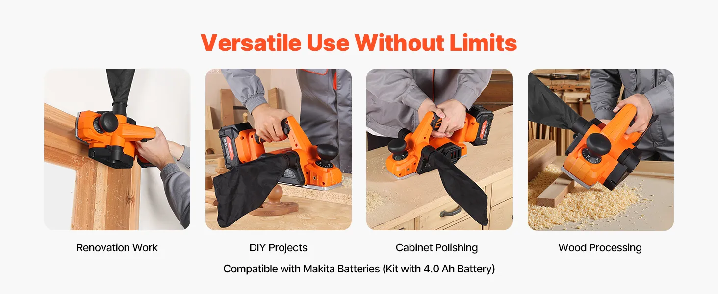 Nuestro cepillo de mano para trabajar la madera es ideal para trabajos de renovación, proyectos de bricolaje, pulido de gabinetes y carpintería, y satisfará sus necesidades en cualquier momento y en cualquier lugar.