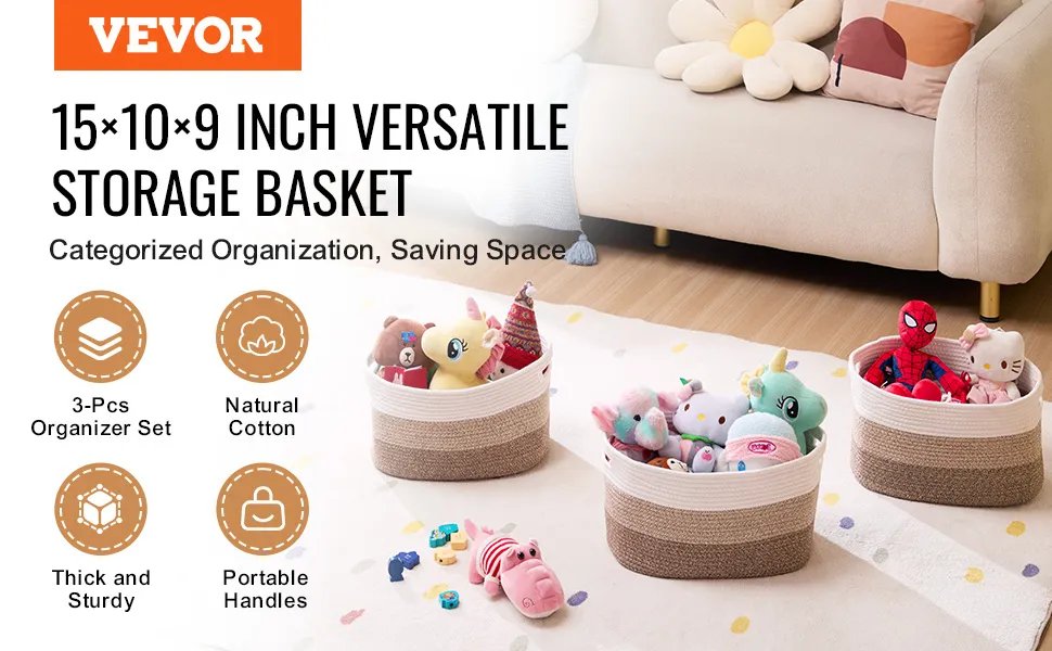 Organización ordenada: esta canasta de almacenamiento de 3 piezas le permite clasificar y almacenar de manera ordenada diversos artículos del hogar, lo que hace que su hogar luzca más ordenado. Con un tamaño conveniente de 15 x 10 x 9 pulgadas, cabe en estantes o armarios, lo que le ayuda a ahorrar espacio.