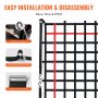 Tight mesh with a striking red design: VEVOR's robust cargo net features a wide, flat mesh structure to prevent tangling and knotting. Our heavy-duty cargo net is also equipped with four highly visible red webbing straps to warn following vehicles.
