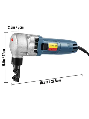 El cortador de nibbler eléctrico muere 360 grados. Tiene una carrera grande para acero, aluminio, plástico u otros metales limpios y precisos. El nibbler tiene un diseño de cuerpo delgado y ergonómico para un fácil agarre, es liviano para un fácil manejo. El cortador de taladro de metal tiene un fácil reemplazo de punzón y matriz para reducir el tiempo de inactividad.