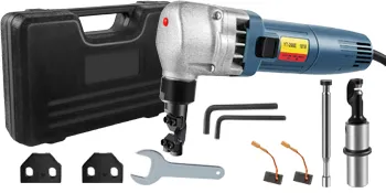 Este cortador de nibbler presenta suficientes accesorios, incluido un bloque reemplazable, llaves inglesas y una caja de herramientas para facilitar su transporte.