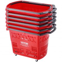 VEVOR Shopping Baskets, 20 PCS, 21L Stackable PE Plastic Grocery Baskets with Handles, Dense Mesh Structure, Holds up to 9.07kg, Portable for Grocery, Retail, Stores, Supermarket, Home Use, Red