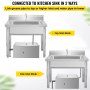 Trampa de grasa comercial VEVOR con entradas de agua superiores y laterales instalada debajo de un fregadero de acero inoxidable