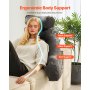 VEVOR Almohada de Lectura con Reposacabezas Extraíble, Respaldo con 3 Bolsillos, Espuma Viscoelástica Triturada y Tela Corta de Terciopelo Lavable, Lateral con Asas para Leer y Descansar, Gris