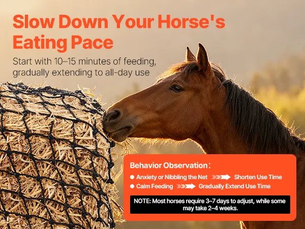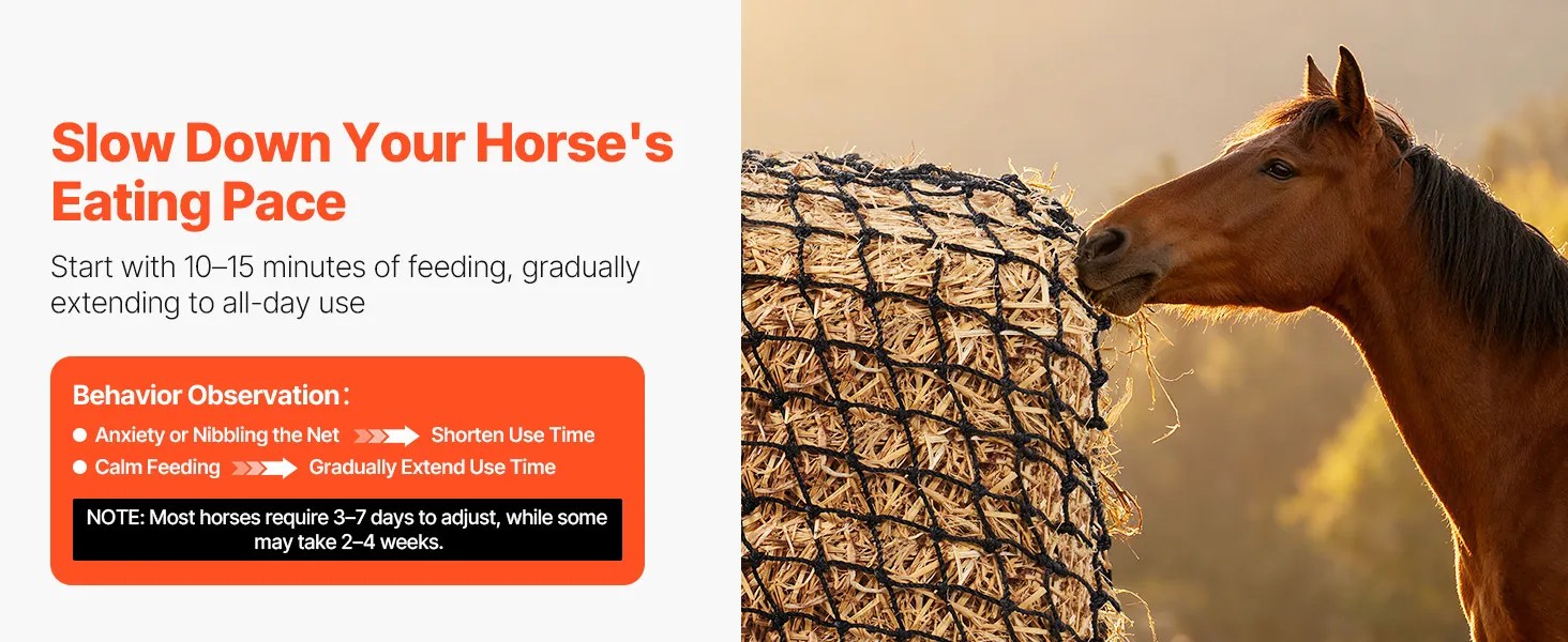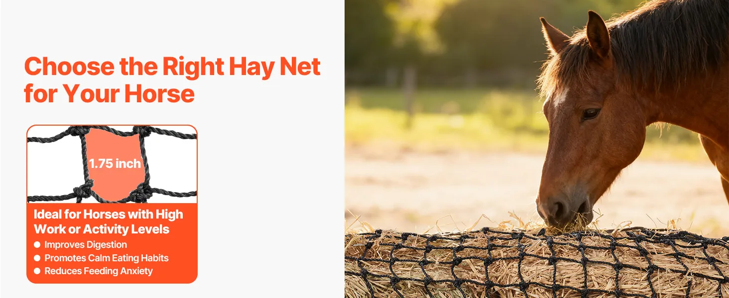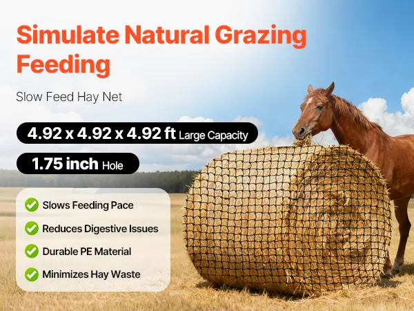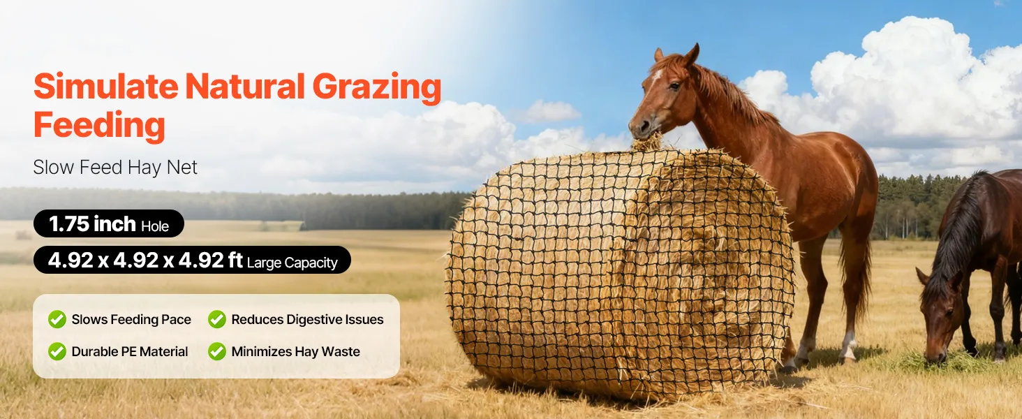 Nuestra red de heno de pacas redondas de alimentación lenta adopta un método de alimentación gradual para ayudar a los caballos a desarrollar hábitos alimenticios positivos, reduciendo la ansiedad y la resistencia.