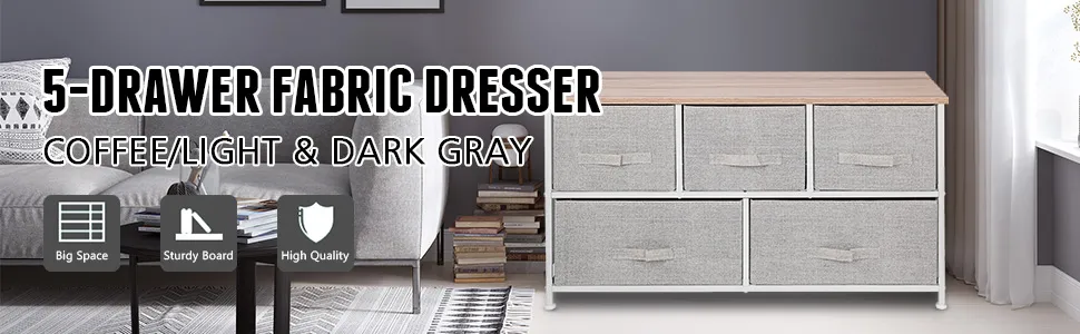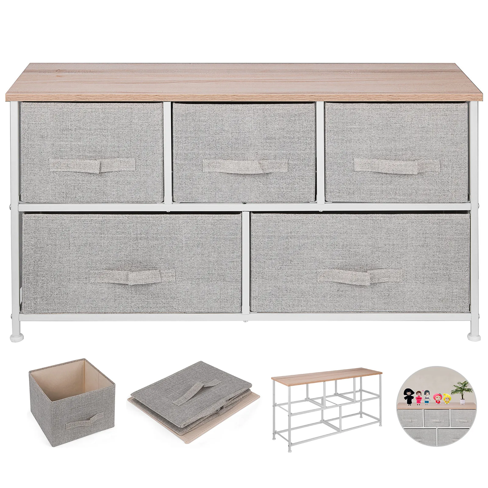 Este es un gabinete de almacenamiento de estilo simple y moderno para uso diario. Tiene cinco cajones grandes y profundos, ayuda a almacenar ropa, mantas, juguetes para bebés, libros y mantiene su habitación organizada. El marco de metal resistente, la superficie sólida de MDF, hacen que este producto sea liviano pero estable. Excelente producto, debes comprarlo AHORA.