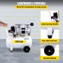 Este compresor de aire sin aceite utiliza motores de cobre ultra silenciosos y bombas sin aceite, de alta eficiencia y sin mantenimiento. El compresor de aire está equipado con un manómetro y una válvula de seguridad, que es seguro de operar; al mismo tiempo, también es fácil de mover. Por lo tanto, es una buena opción para reparaciones en el hogar, inflado de neumáticos, limpieza de vehículos, herramientas neumáticas, etc.