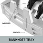 Equipado con un sensor de arranque en el alimentador. Cuando se ingresa dinero, comienza a contar automáticamente. Tolva de 300 billetes de capacidad. El alimentador de billetes de carga superior es ajustable.