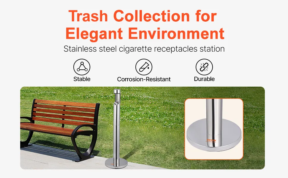 Durabilidad premium: Este cenicero está hecho de acero inoxidable y ofrece una excelente resistencia a la corrosión y a la intemperie. Su apariencia elegante y con estilo garantiza un uso prolongado en exteriores con estabilidad y seguridad, lo que la convierte en una solución confiable para eliminar colillas de cigarrillos